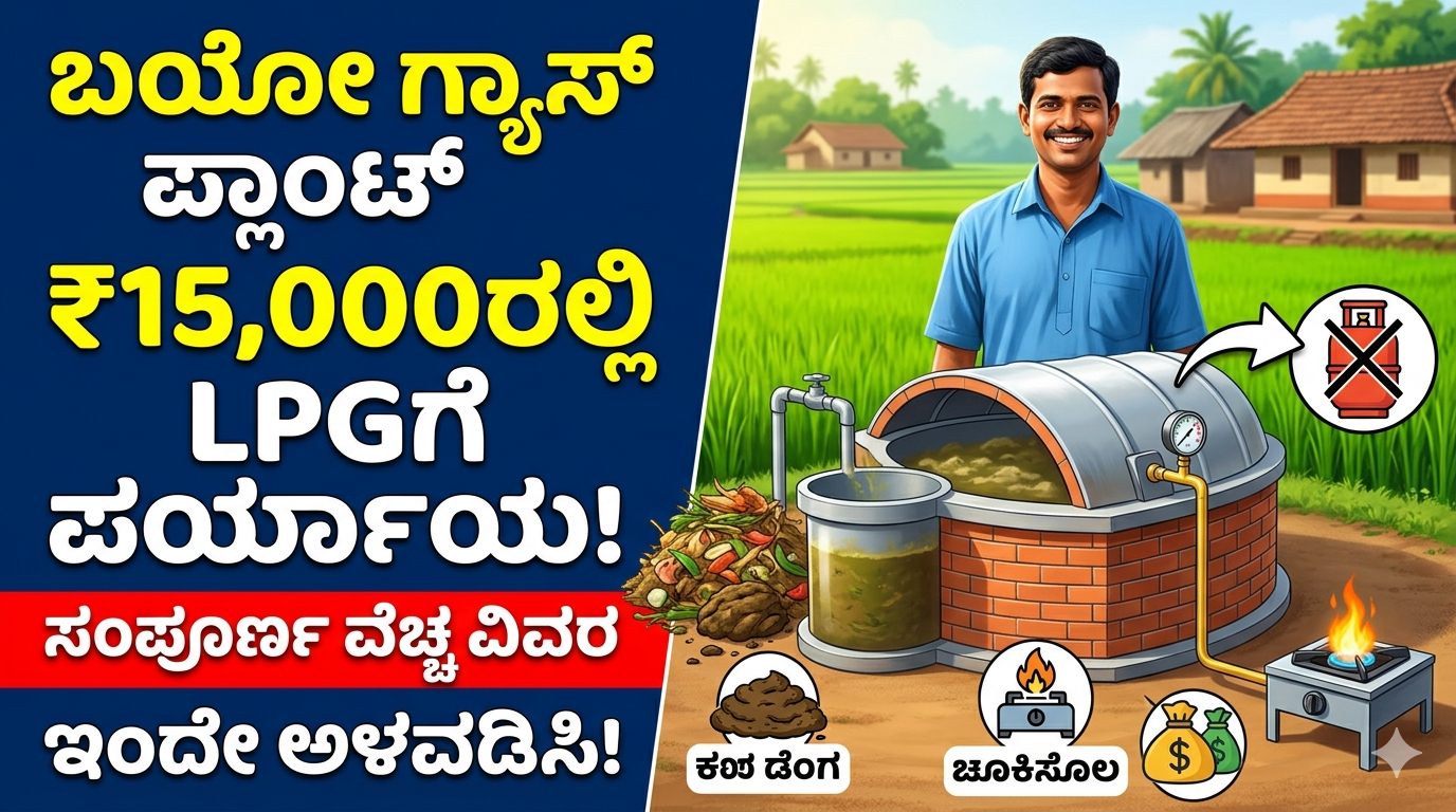 Bio Gas ಬಯೋ ಗ್ಯಾಸ್ ಪ್ಲಾಂಟ್ ₹15,000ರಲ್ಲಿ LPGಗೆ ಪರ್ಯಾಯ! ಸಂಪೂರ್ಣ ವೆಚ್ಚ ವಿವರ
