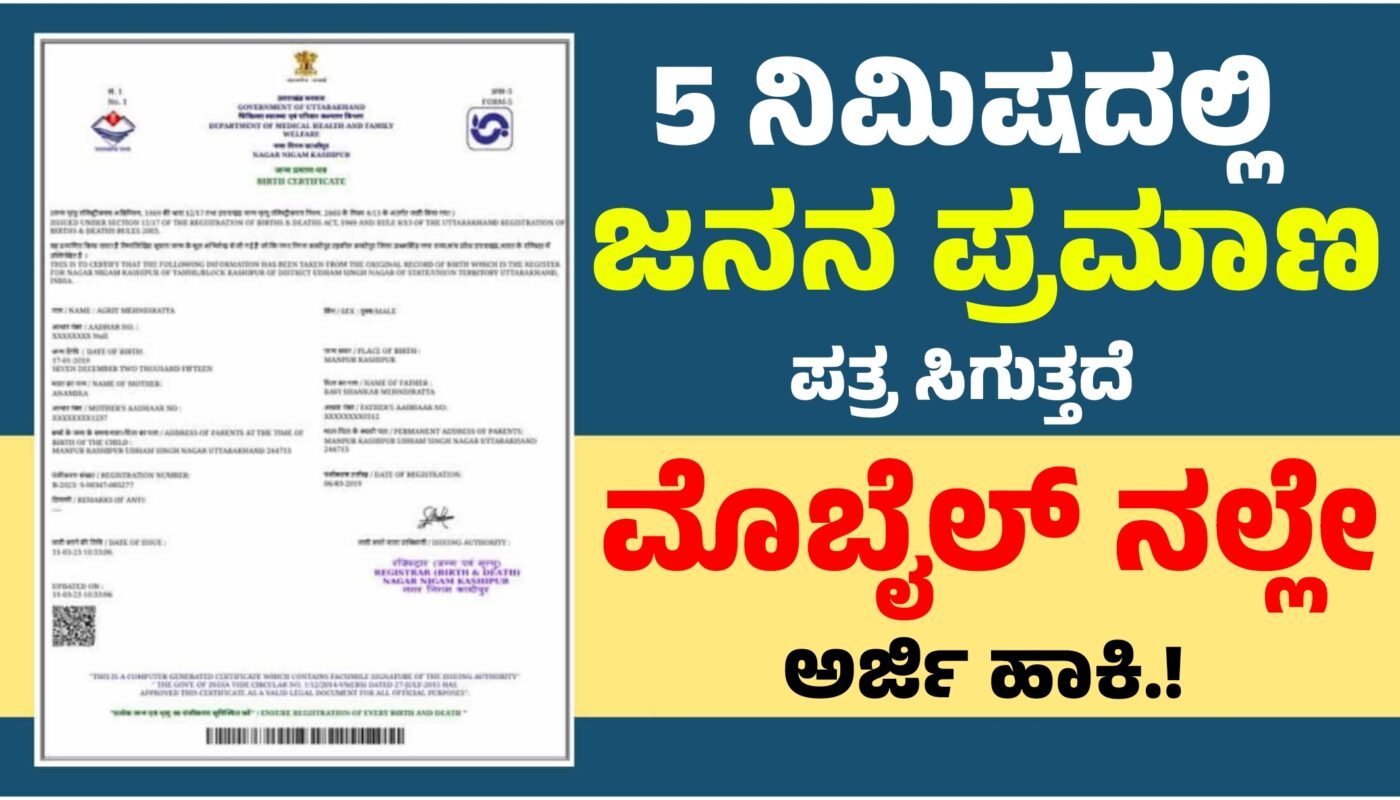 Birth Certificate ಯಾವುದೇ ಮಗುವಿನ ಜನ್ಮದಿಂದಲೇ ಅದರ ಅಸ್ತಿತ್ವವನ್ನು ದೃಢಪಡಿಸುವ ಅಧಿಕೃತ ದಾಖಲೆ ಎಂದರೆ ಜನನ ಪ್ರಮಾಣ ಪತ್ರ. ಇಂದು ಸರ್ಕಾರದಿಂದ ನೀಡಲ್ಪಡುವ ಪ್ರತಿಯೊಂದು ಯೋಜನೆ, ಶಾಲಾ ಪ್ರವೇಶ, ಪಾಸ್‌ಪೋರ್ಟ್, ಮತದಾರ ಗುರುತಿನ ಚೀಟಿ, ಪಾನ್ ಕಾರ್ಡ್ ಅಥವಾ ಸರ್ಕಾರಿ ಹುದ್ದೆಗೆ ಅರ್ಜಿ ಹಾಕುವಾಗ – ಎಲ್ಲೆಡೆ ಈ ಜನನ ಪ್ರಮಾಣ ಪತ್ರ ಅಗತ್ಯ.