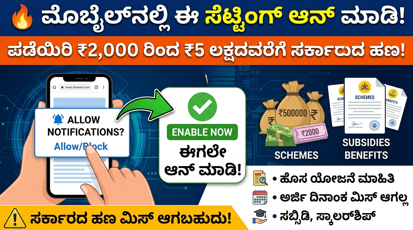 ಇದಕ್ಕೆ ಈಗ ಸರಳ ಪರಿಹಾರವಿದೆ. ನಿಮ್ಮ ಮೊಬೈಲ್‌ನಲ್ಲಿ ಒಂದು ಸಣ್ಣ ಸೆಟ್ಟಿಂಗ್ ಆನ್ ಮಾಡಿದರೆ ಸಾಕು – ಸರ್ಕಾರದ ಎಲ್ಲಾ ಹೊಸ ಯೋಜನೆಗಳ ಮಾಹಿತಿ ನಿಮಗೆ ಮೊದಲಿಗೇ ಸಿಗುತ್ತದೆ.