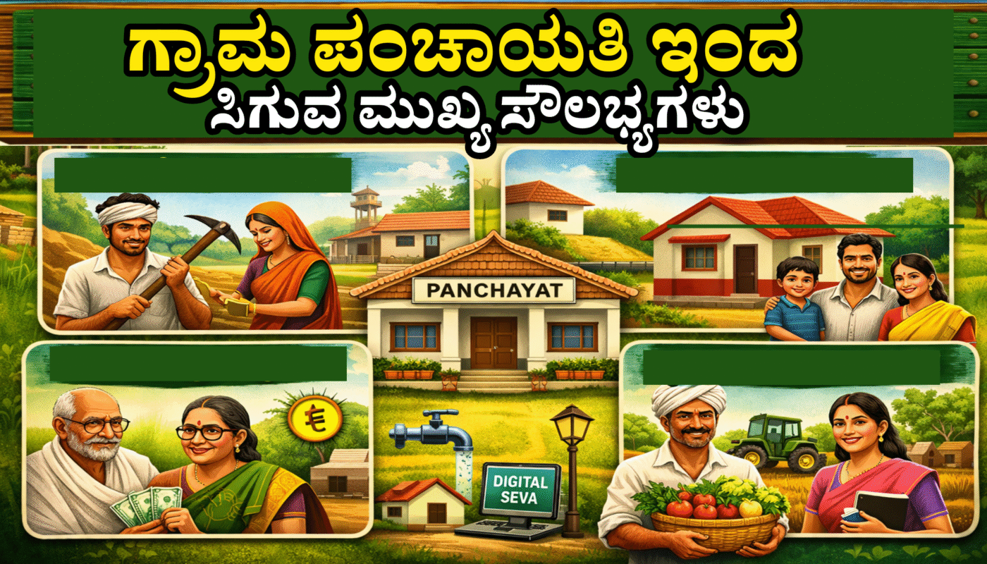ಈ ಲೇಖನದಲ್ಲಿ ಗ್ರಾಮ ಪಂಚಾಯತಿ ಮೂಲಕ ಪಡೆಯಬಹುದಾದ ಪ್ರಮುಖ ಯೋಜನೆಗಳು, ಸೌಲಭ್ಯಗಳು ಹಾಗೂ ಅರ್ಜಿ ಸಲ್ಲಿಸುವ ವಿಧಾನಗಳ ಬಗ್ಗೆ ಸರಳವಾಗಿ ತಿಳಿದುಕೊಳ್ಳೋಣ.