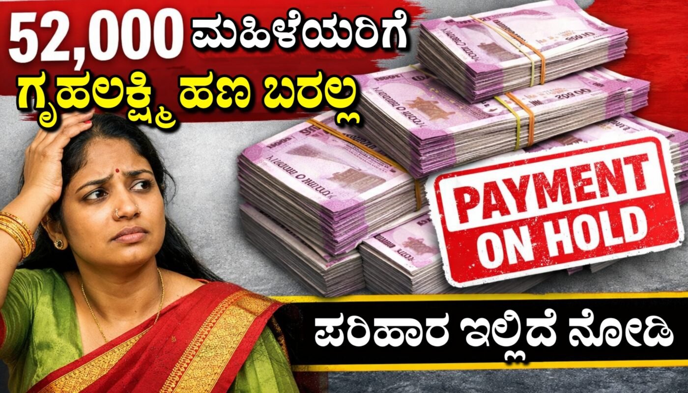 Gruhalakshmi ಗೃಹಲಕ್ಷ್ಮಿ ಯೋಜನೆ ಹಣ ಬಂದಿಲ್ಲವೇ? 52 ಸಾವಿರ ಮಹಿಳೆಯರಿಗೆ ತಾತ್ಕಾಲಿಕ ಅಡಚಣೆ – ಕಾರಣ, ಪರಿಹಾರ ಮತ್ತು ಮುಂದಿನ ಕ್ರಮ ಸಂಪೂರ್ಣ ಮಾಹಿತಿ