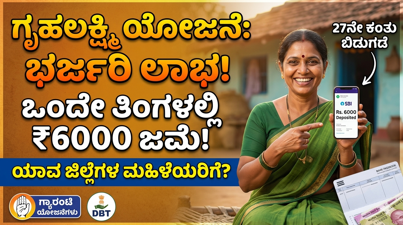 GruhaLakshmi ಕರ್ನಾಟಕ ಸರ್ಕಾರದ ಪ್ರಮುಖ ಗ್ಯಾರಂಟಿ ಯೋಜನೆಗಳಲ್ಲೊಂದು ಆಗಿರುವ ಗೃಹಲಕ್ಷ್ಮಿ ಯೋಜನೆ ಮತ್ತೆ ಸುದ್ದಿಯಲ್ಲಿದೆ. ರಾಜ್ಯದ ಲಕ್ಷಾಂತರ ಮಹಿಳೆಯರಿಗೆ ಆರ್ಥಿಕ ಭದ್ರತೆ ನೀಡುತ್ತಿರುವ ಈ ಯೋಜನೆಯ 27ನೇ ಕಂತಿನ ಹಣ ಈಗಾಗಲೇ ಬಿಡುಗಡೆ ಆಗಿದ್ದು, ಹಲವಾರು ಜಿಲ್ಲೆಗಳ ಫಲಾನುಭವಿಗಳ ಬ್ಯಾಂಕ್ ಖಾತೆಗೆ ನೇರವಾಗಿ ಜಮೆಯಾಗುತ್ತಿದೆ. ವಿಶೇಷವಾಗಿ, ಇತ್ತೀಚಿನ ದಿನಗಳಲ್ಲಿ ಒಂದೇ ತಿಂಗಳೊಳಗೆ ಮೂರು ಕಂತುಗಳು ಜಮೆಯಾಗಿರುವುದು ಮಹಿಳೆಯರಿಗೆ ಹೆಚ್ಚುವರಿ ಸಂತಸ ತಂದಿದೆ.