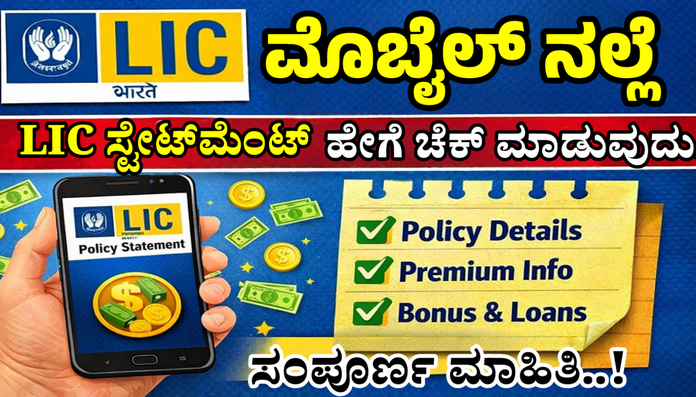 LIC Statement ಇಂದು ಡಿಜಿಟಲ್ ಯುಗದಲ್ಲಿ ಎಲ್ಲ ಸೇವೆಗಳು ಮೊಬೈಲ್ ಮೂಲಕವೇ ಲಭ್ಯವಾಗುತ್ತಿವೆ. ಅದೇ ರೀತಿ ನಿಮ್ಮ LIC ಪಾಲಿಸಿ ಸ್ಟೇಟ್ಮೆಂಟ್ ಕೂಡ ಈಗ ಮನೆಯಲ್ಲೇ ಕುಳಿತು ಮೊಬೈಲ್‌ನಲ್ಲಿ ನೋಡಬಹುದು. ಪಾಲಿಸಿ ಪ್ರೀಮಿಯಂ ಪಾವತಿ ವಿವರಗಳು, ಬೋನಸ್ ಮಾಹಿತಿ, ಮುಂದಿನ ಡ್ಯೂ ದಿನಾಂಕ ಇತ್ಯಾದಿ ತಿಳಿದುಕೊಳ್ಳಲು ಈ ಸ್ಟೇಟ್ಮೆಂಟ್ ಬಹಳ ಉಪಯುಕ್ತವಾಗಿದೆ.