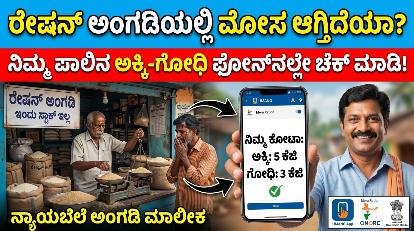 ಸರ್ಕಾರದ UMANG App ನಲ್ಲಿ ಇರುವ “Mera Ration” ಸೇವೆಯ ಮೂಲಕ ನೀವು ನಿಮ್ಮ ರೇಷನ್ ಸಂಬಂಧಿತ ಸಂಪೂರ್ಣ ಮಾಹಿತಿಯನ್ನು ನೋಡಬಹುದು. ಇದರಿಂದ ರೇಷನ್ ವಿತರಣೆಯಲ್ಲಿ ಪಾರದರ್ಶಕತೆ ಹೆಚ್ಚುತ್ತದೆ ಮತ್ತು ಯಾರಾದರೂ ಮೋಸ ಮಾಡುವ ಸಾಧ್ಯತೆ ಕಡಿಮೆಯಾಗುತ್ತದೆ. ರೇಷನ್ ಅಂಗಡಿಗೆ ಹೋಗುವ ಮೊದಲುಲೇ ನೀವು ನಿಮ್ಮ ಪಾಲಿನ ಧಾನ್ಯಗಳ ವಿವರ ತಿಳಿದುಕೊಳ್ಳಬಹುದು.