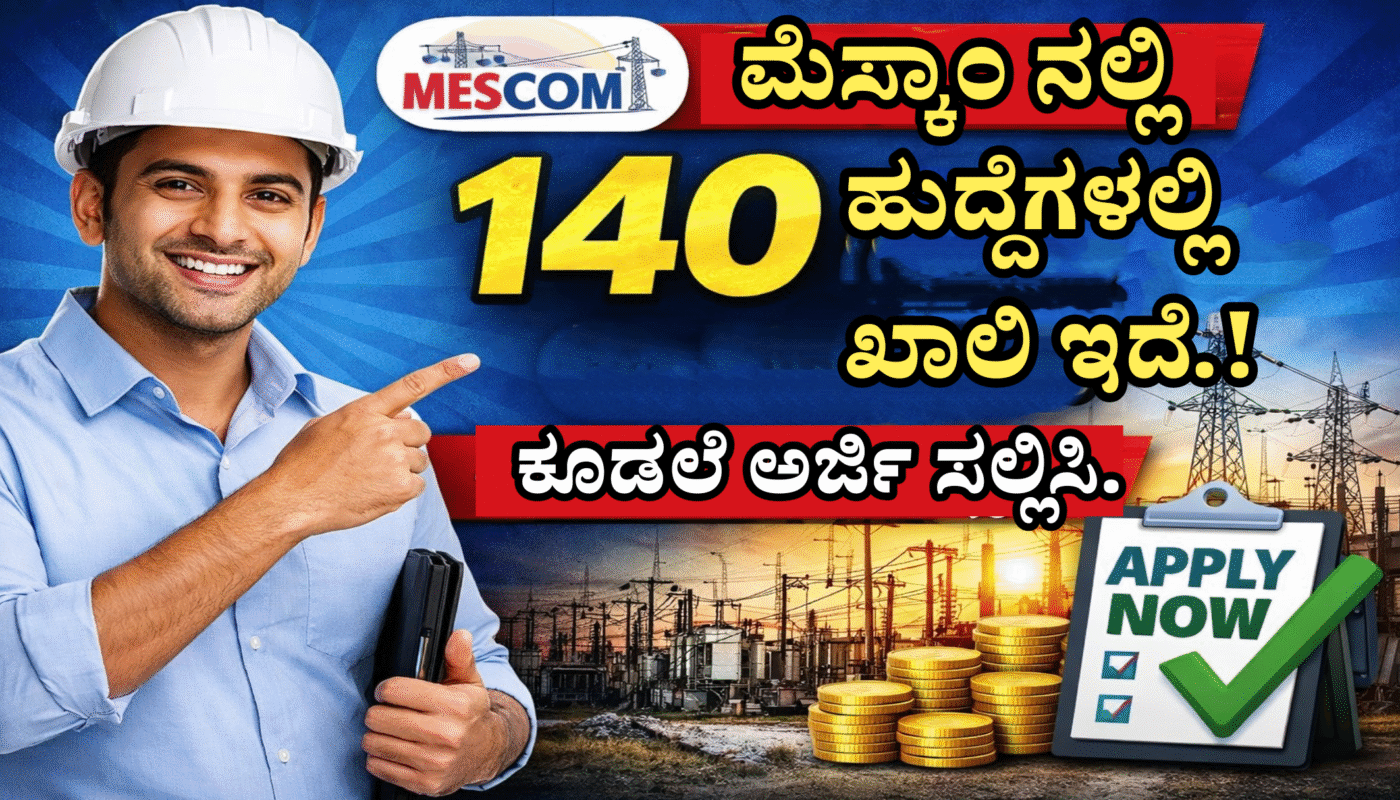 ಕರ್ನಾಟಕದ ಯುವ ಪದವೀಧರರು ಹಾಗೂ ಡಿಪ್ಲೋಮಾ ಪೂರ್ಣಗೊಳಿಸಿದ ಅಭ್ಯರ್ಥಿಗಳಿಗೆ ಉತ್ತಮ ಅವಕಾಶ ಒದಗಿದೆ. ಮಂಗಳೂರು ವಿದ್ಯುತ್ ಸರಬರಾಜು ಕಂಪನಿ ನಿಯಮಿತ (MESCOM) ಸಂಸ್ಥೆಯು 2026ನೇ ಸಾಲಿನ ಅಪ್ರೆಂಟಿಸ್ ತರಬೇತಿಗಾಗಿ ಅಧಿಕೃತವಾಗಿ ಅಧಿಸೂಚನೆ ಪ್ರಕಟಿಸಿದೆ. ಈ ನೇಮಕಾತಿಯ ಮೂಲಕ ಒಟ್ಟು 140 ಅಪ್ರೆಂಟಿಸ್ ಹುದ್ದೆಗಳನ್ನು ಭರ್ತಿ ಮಾಡಲಾಗುತ್ತಿದ್ದು, ಆಯ್ಕೆಯಾದ ಅಭ್ಯರ್ಥಿಗಳಿಗೆ ಒಂದು ವರ್ಷದ ತರಬೇತಿ ಅವಧಿಯಲ್ಲಿ ಮಾಸಿಕ ಸ್ಟೈಫಂಡ್ ಕೂಡ ನೀಡಲಾಗುತ್ತದೆ. ಸರ್ಕಾರಿ ಸ್ವಾಮ್ಯದ ಪ್ರತಿಷ್ಠಿತ ಸಂಸ್ಥೆಯಲ್ಲಿ ಪ್ರಾಯೋಗಿಕ ಅನುಭವ ಪಡೆಯಲು ಇದು ಉತ್ತಮ ಅವಕಾಶವಾಗಿದೆ.