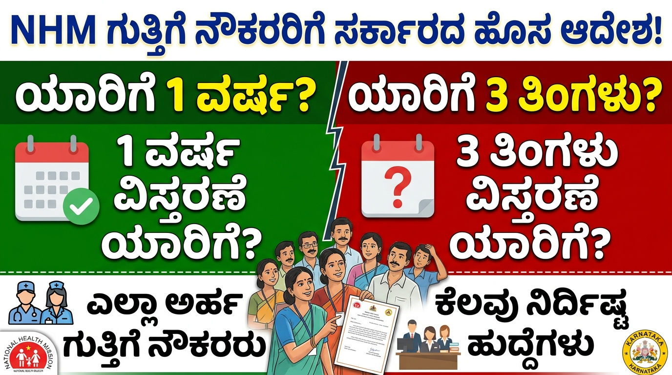 NHM ರಾಜ್ಯದ NHM ಗುತ್ತಿಗೆ ನೌಕರರಿಗೆ ರಾಜ್ಯ ಸರ್ಕಾರದಿಂದ ಮಹತ್ವದ ಸುದ್ದಿ ಹೊರಬಿದ್ದಿದೆ. ಕಳೆದ ಕೆಲ ತಿಂಗಳಿನಿಂದ “ಸೇವೆ ಮುಂದುವರಿಯುತ್ತದೆಯೇ?” ಎಂಬ ಆತಂಕದಲ್ಲಿದ್ದ ಸಾವಿರಾರು ನೌಕರರಿಗೆ ಈಗ ಸ್ಪಷ್ಟತೆ ದೊರಕಿದೆ. 2026-27ನೇ ಸಾಲಿಗೆ ಸಂಬಂಧಿಸಿದಂತೆ ಸರ್ಕಾರ ಹೊಸ ಆದೇಶವನ್ನು ಜಾರಿಗೆ ತಂದಿದ್ದು, ನೇರ ಗುತ್ತಿಗೆ (Direct Contract) ನೌಕರರ ಸೇವೆಯನ್ನು ಮುಂದುವರಿಸುವುದಾಗಿ ಘೋಷಿಸಿದೆ. ಆದರೆ ಈ ಆದೇಶದಲ್ಲಿ ಕೆಲವು ಪ್ರಮುಖ ಷರತ್ತುಗಳಿದ್ದು, ಪ್ರತಿಯೊಬ್ಬ ನೌಕರರೂ ಅದನ್ನು ಗಮನದಿಂದ ತಿಳಿದುಕೊಳ್ಳುವುದು ಅಗತ್ಯ.