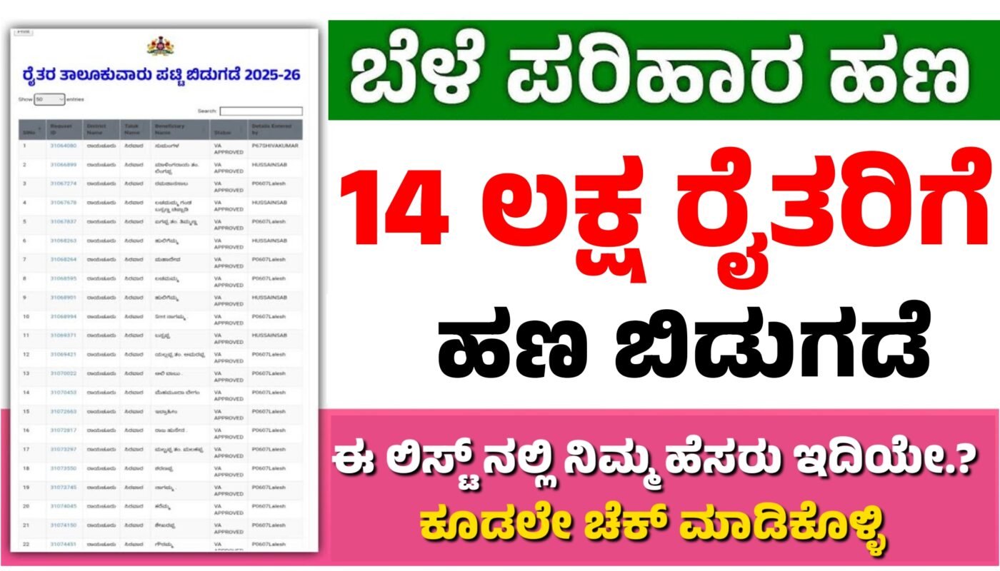 ಕರ್ನಾಟಕ ರಾಜ್ಯದ ರೈತ ಸಮುದಾಯಕ್ಕೆ ಸರ್ಕಾರದಿಂದ ಒಂದು ಮಹತ್ವದ ಹಾಗೂ ನಿರಾಳತೆಯ ಸುದ್ದಿ ಲಭಿಸಿದೆ. ಕಳೆದ ಮುಂಗಾರು ಹಂಗಾಮಿನಲ್ಲಿ ಅತಿವೃಷ್ಟಿ, ಭಾರಿ ಮಳೆ ಹಾಗೂ ನೆರೆ ಪರಿಸ್ಥಿತಿಯಿಂದ ರಾಜ್ಯದ ಹಲವಾರು ಜಿಲ್ಲೆಗಳಲ್ಲಿ ಬೆಳೆಗಳು ಸಂಪೂರ್ಣವಾಗಿ ಹಾನಿಗೊಳಗಾಗಿದ್ದವು. ಈ ಹಿನ್ನೆಲೆಯಲ್ಲಿ ಸಂಕಷ್ಟದಲ್ಲಿದ್ದ ರೈತರಿಗೆ ಸರ್ಕಾರದಿಂದ ಬೆಳೆ ಹಾನಿ ಪರಿಹಾರ (Input Subsidy) ರೂಪದಲ್ಲಿ ಭಾರೀ ಮೊತ್ತದ ಹಣವನ್ನು ನೇರವಾಗಿ ಅವರ ಬ್ಯಾಂಕ್ ಖಾತೆಗಳಿಗೆ ವರ್ಗಾವಣೆ ಮಾಡಲಾಗಿದೆ.