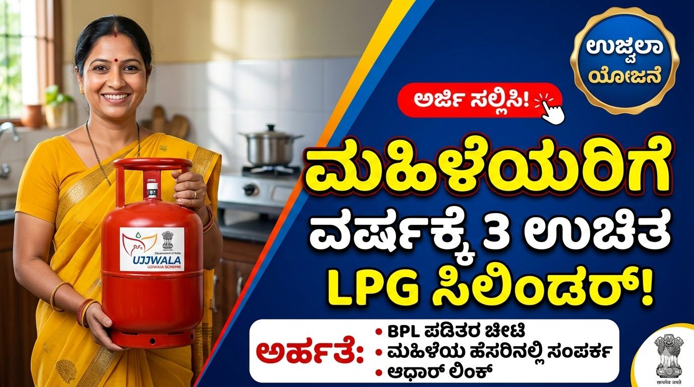 Ujjwalav Scheme ದೇಶದ ಮಹಿಳೆಯರಿಗೆ ಅಡುಗೆ ವೆಚ್ಚವನ್ನು ಕಡಿಮೆ ಮಾಡಲು ಸರ್ಕಾರ ಹಲವು ಯೋಜನೆಗಳನ್ನು ಜಾರಿಗೆ ತಂದಿದೆ. ಅವುಗಳಲ್ಲಿ ಪ್ರಮುಖವಾದುದು ಉಜ್ವಲಾ ಯೋಜನೆ (Ujjwala Scheme). ಈ ಯೋಜನೆಯಡಿ ಬಡ ಮತ್ತು ಮಧ್ಯಮ ವರ್ಗದ ಕುಟುಂಬಗಳಿಗೆ LPG ಗ್ಯಾಸ್ ಸಂಪರ್ಕ ಮತ್ತು ಸಬ್ಸಿಡಿ ನೀಡಲಾಗುತ್ತದೆ. ಈಗ ಸರ್ಕಾರ ಮಹಿಳೆಯರಿಗೆ ವರ್ಷಕ್ಕೆ 3 ಉಚಿತ ಗ್ಯಾಸ್ ಸಿಲಿಂಡರ್ ನೀಡುವ ಯೋಜನೆ ಮುಂದುವರಿಸುತ್ತಿರುವುದು ದೊಡ್ಡ ಸಿಹಿಸುದ್ದಿಯಾಗಿದೆ.